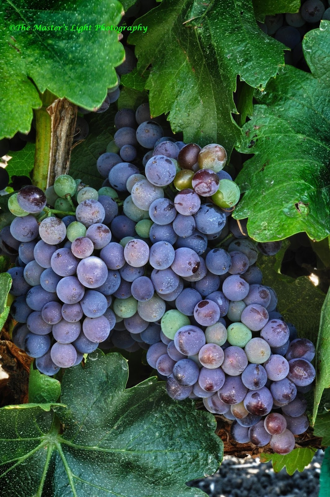 Robin and I recently spent the day going to Napa, CA. We got up very early and reached our destination about 7:30am. It was very beautiful early in the morning, with clouds and sunshine over the valley. We then went to several vineyards and were blessed with beautiful grapes that were in the process of going through Veraison. According to Wiki, "Veraison is a viticulure (grape-growing) term meaning "the onset of ripening". It is originally French, but has been adopted into English use. The official definition of veraison is "change of color of the grape berries." Veraison represents the transition from berry growth to berry ripening, and many changes in berry development occur at Veraison." It is a very beautiful time of the year. Everything is so very green around the grapes while they take on an abundance of color. Some of the grapes had already finished going through the phase, while many others were still going through it. It was great to spend time with Robin, my wife of 26 years. Here is a sample of what we saw. God blesses us each and everytime we go out. We are very grateful and know that God is eveywhere, if we just take the time to see.
